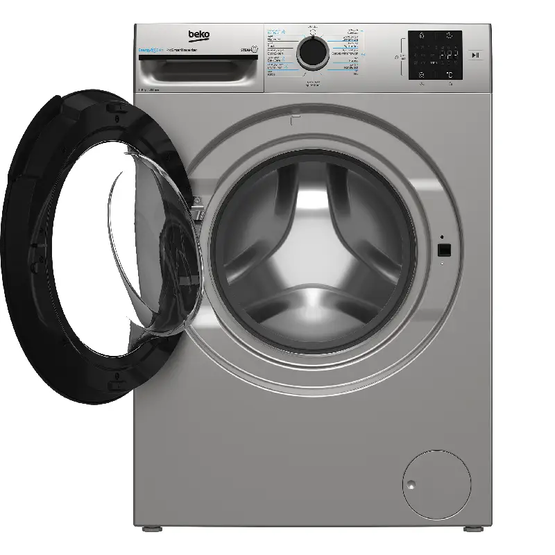 BM3WFT38200BS || Lave-linge Frontal Beko BM3WFT38200BS – 8 kg – 1200 tr/min – Vapeur SteamCure – Moteur Inverter – Silver